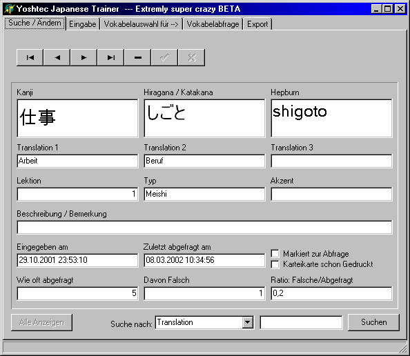 Alle Vokabeln k�nne hier angesehen und ge�ndert werden.